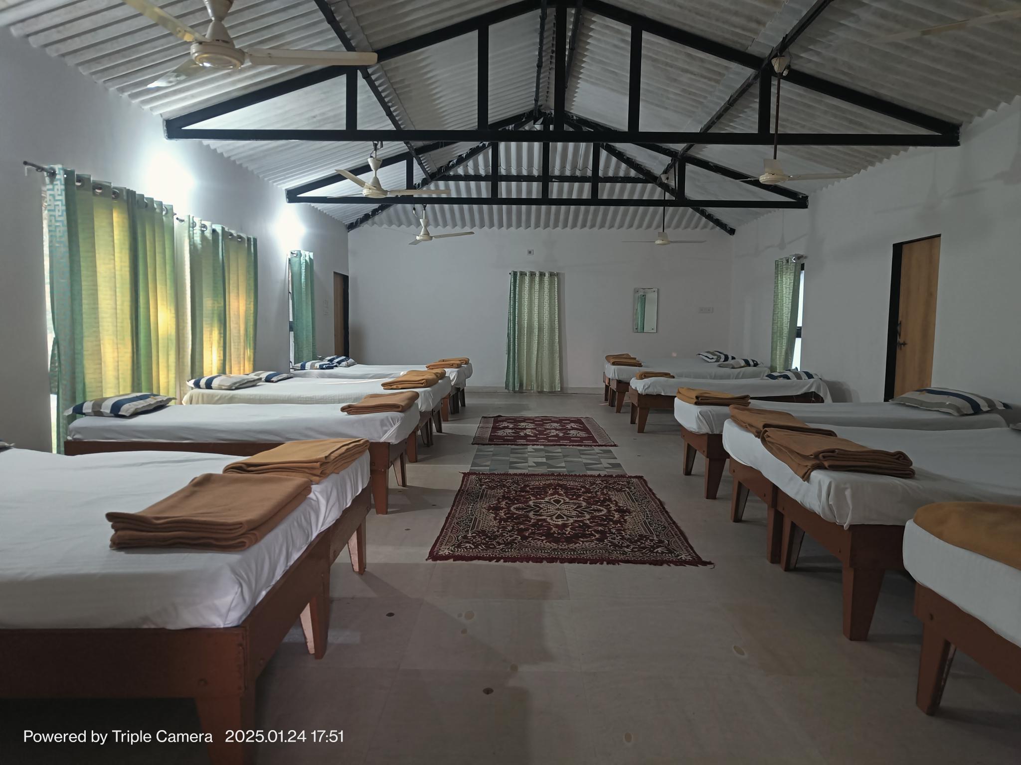 Planning a trip with your whole family? Do not worry, at Gir County, we also offer 12 Bedded family rooms to fit all your family members in one. Our Family hotels in Sasan Gir are specially designed to comfortably organize large families, groups, or travelers. Our 12 bedded family room is one of the best family rooms in Sasan Gir designed with 12 comfortable beds, ample space for relaxation, and necessary amenities. If you are visiting Sasan Gir in a group of travelers or with your whole family, our 12-bed Mixed Dormitory at Sasan is perfect for people who are looking for affordable options yet comfortable stay. Escape from your daily hustle, and plan your stay at our Family Room in Sasan Gir with a Swimming Pool, offering a refreshing escape in the world of being surrounded by nature. Book and enjoy our budget-friendly dormitory in Sasan Gir, surrounded by majestic wildlife and nature, just minutes away from Sasan Gir.