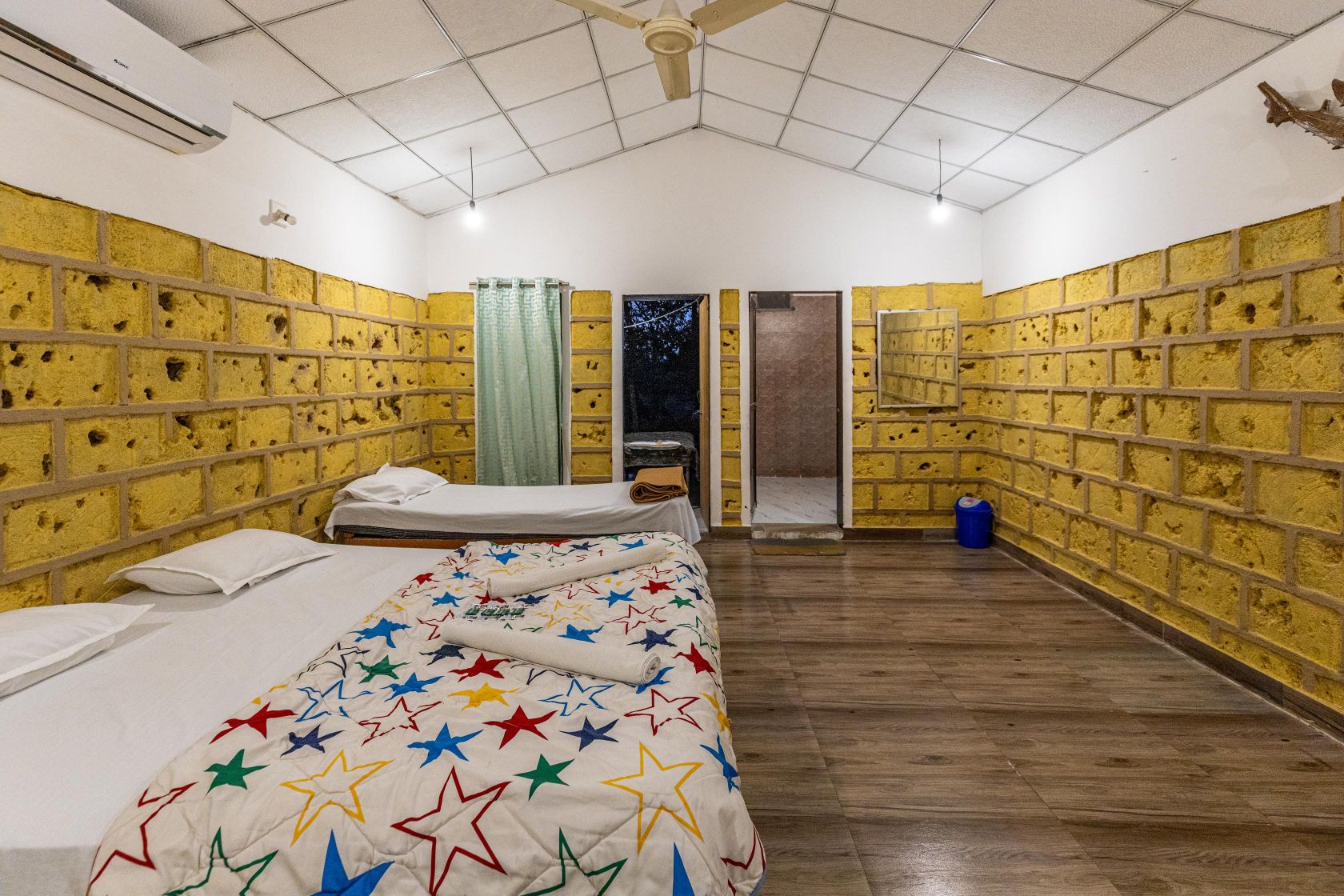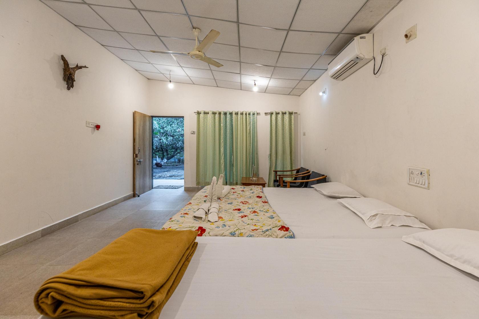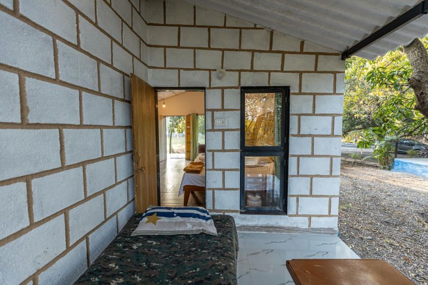 Witness the charm of staying at a One-bedroom chalet, situated at the heart of the Sasan Gir. Our one-bedroom chalet room is crafted with incredible decor, modern amenities, and a wooden interior, suitable especially for couples and solo travelers, our chalet offers a blend of comfort and a peaceful time of life. If you are bored with that daily hectic life, and planning to visit Sasan Gir for a vacation, then book our One-bedroom chalet for rent, and experience an unforgettable time with your loved ones. At Gir County, we offer spacious and full-furnished chalet rooms, a king-sized bedroom, necessary amenities, and large windows for ultimate relaxation. To Enjoy the majestic wildlife, Chalet book Sasan Gir now for an excellent experience. Stay in our luxurious Cottages in Sasan Gir, a perfect escape for loved ones to spend quality time surrounded by the beauty of nature. Check out our one-bedroom chalet price and benefit from it while visiting Sasan Gir, where luxury meets wildlife. This time plan your gateway by being surrounded by nature and wildlife, explore our Chalet book Sasan Gir packages, and experience a luxurious stay.
