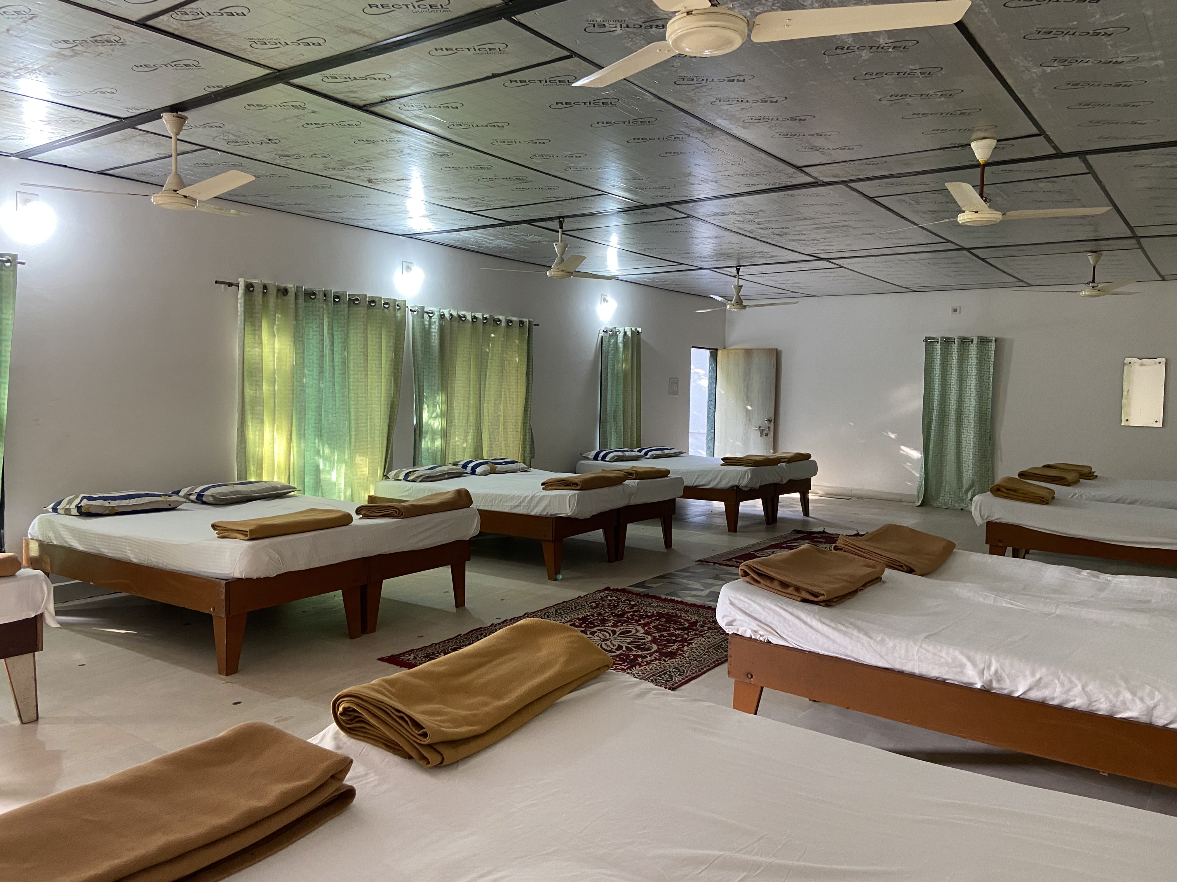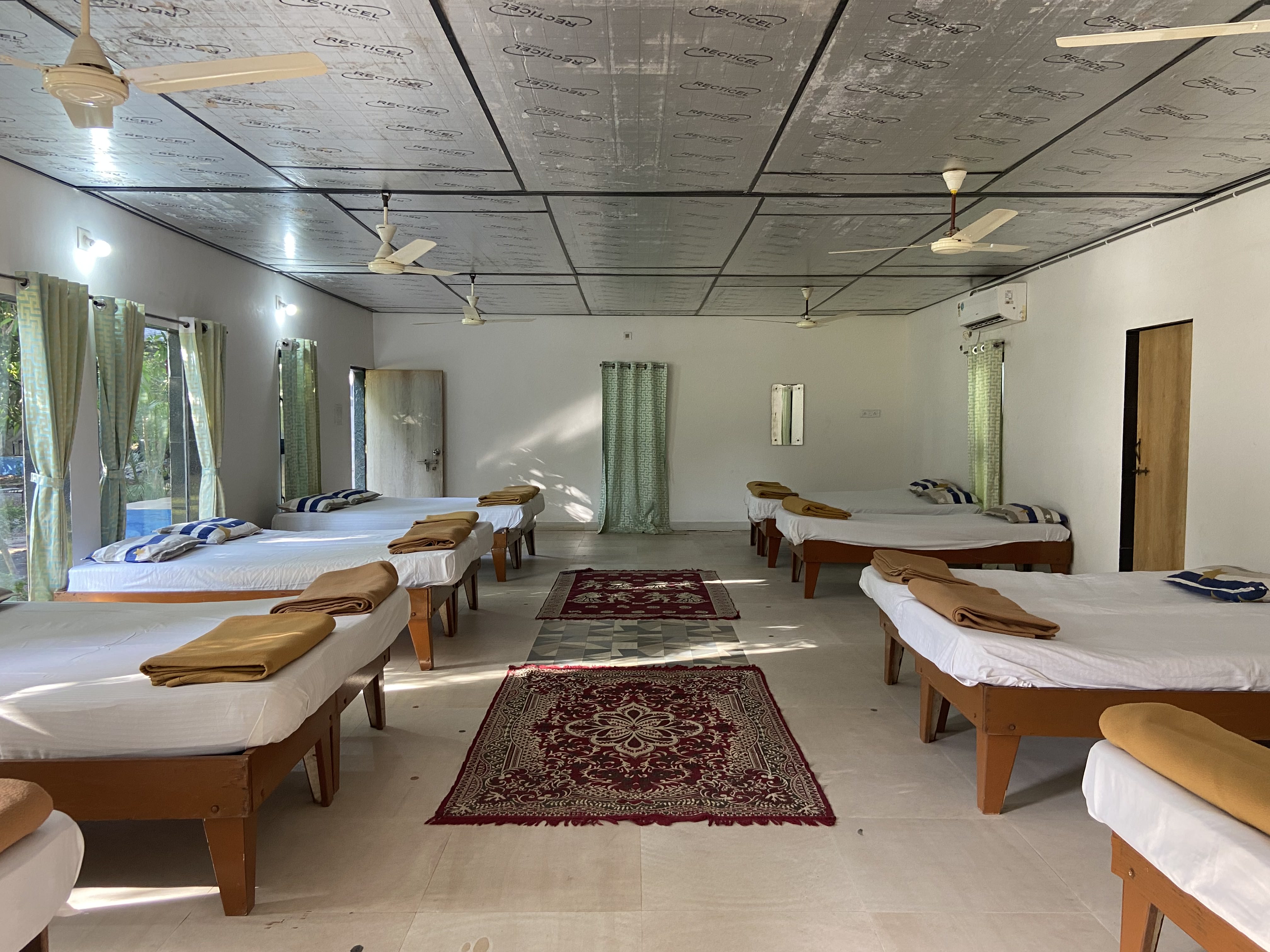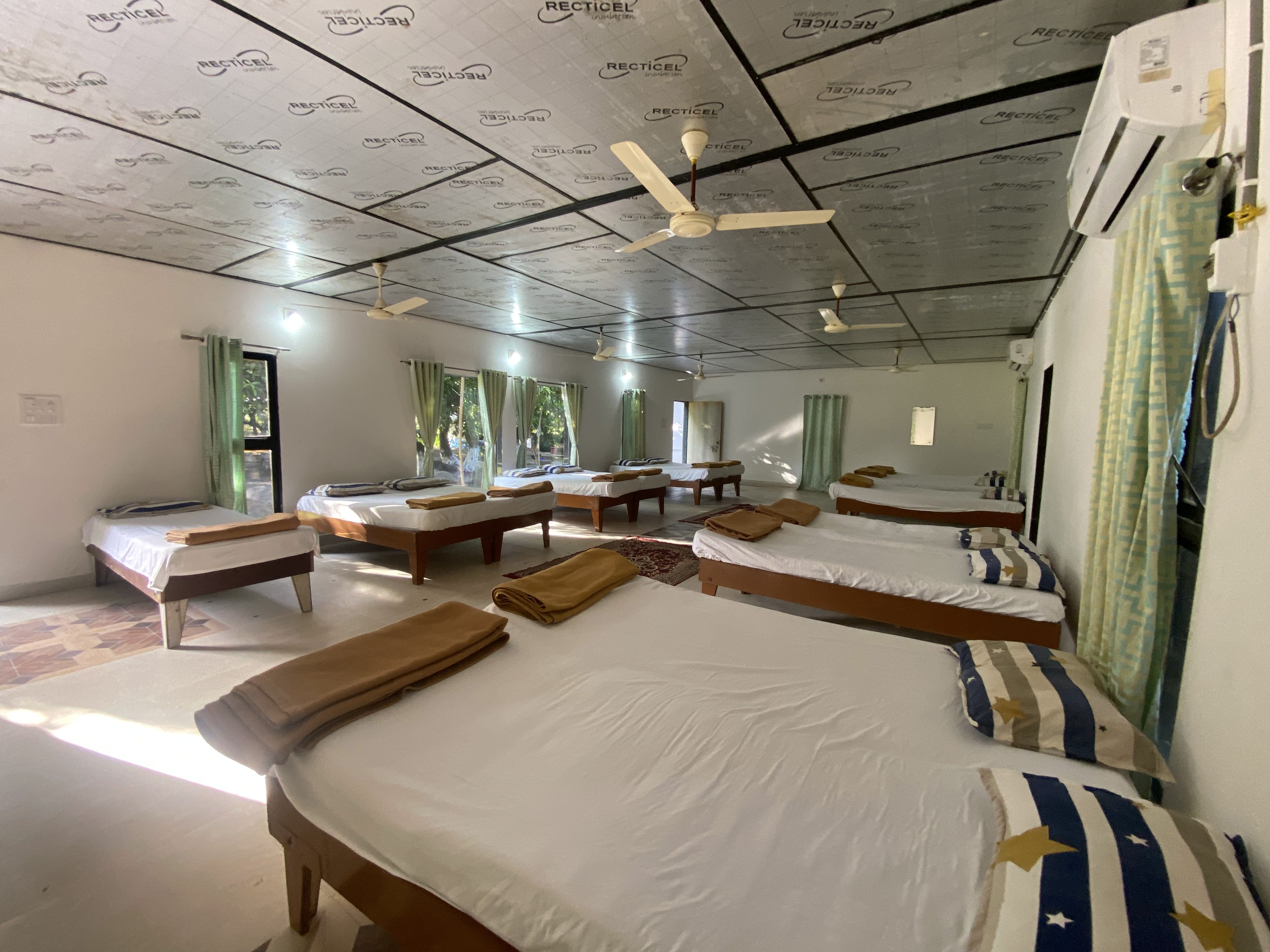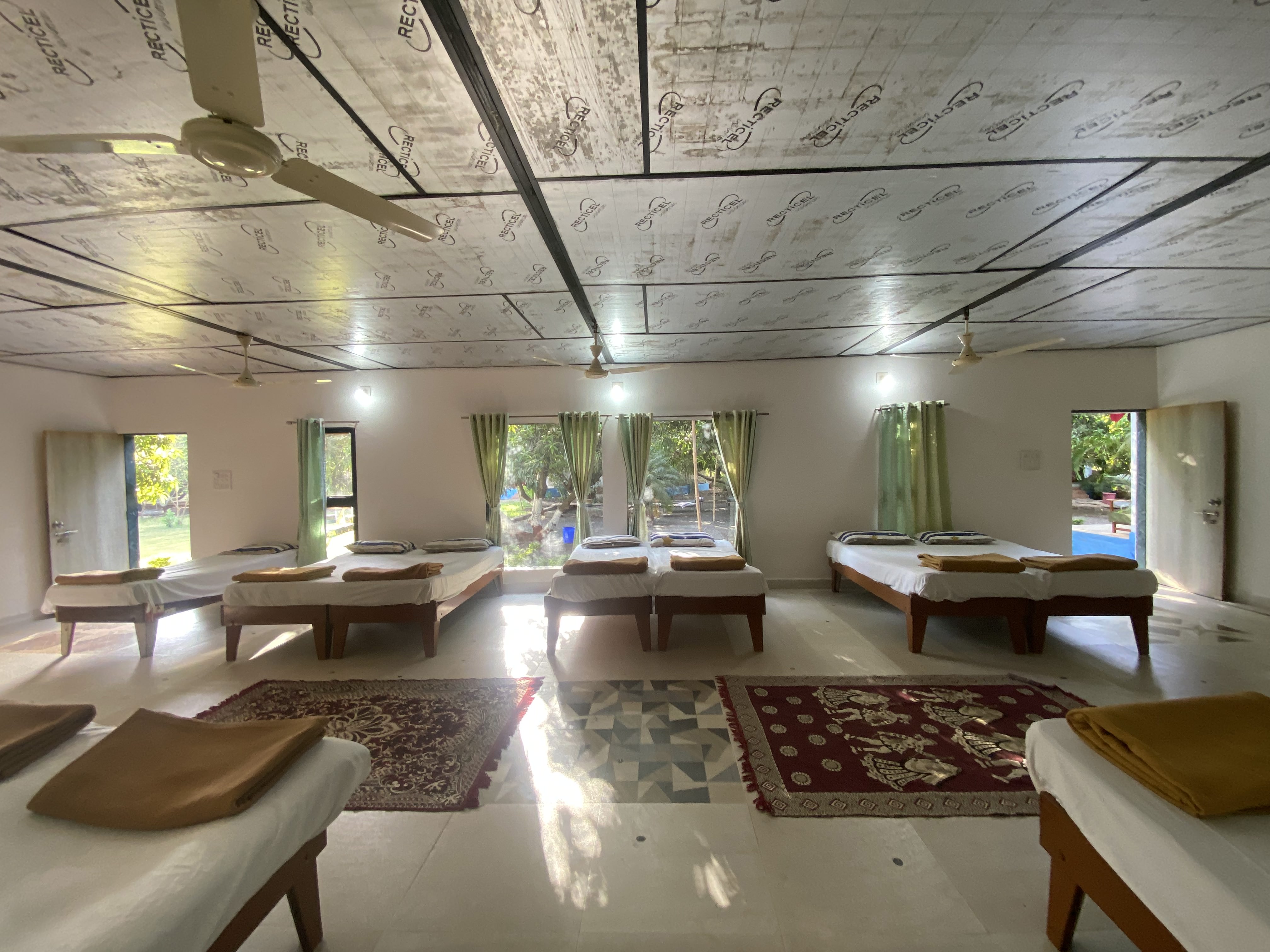 Planning a trip with your whole family? Do not worry, at Gir County, we also offer Ac Family Dormitory to fit all your family members in one. Our Family hotels in Sasan Gir are specially designed to comfortably organize large families, groups, or travelers. Our 12 bedded family room is one of the best family rooms in Sasan Gir designed with 12 comfortable beds, ample space for relaxation, and necessary amenities. If you are visiting Sasan Gir in a group of travelers or with your whole family, our Ac Family Dormitory at Sasan is perfect for people who are looking for affordable options yet comfortable stay. Escape from your daily hustle, and plan your stay at our Family Room in Sasan Gir with a Swimming Pool, offering a refreshing escape in the world of being surrounded by nature. Book and enjoy our budget-friendly dormitory in Sasan Gir, surrounded by majestic wildlife and nature, just minutes away from Sasan Gir.